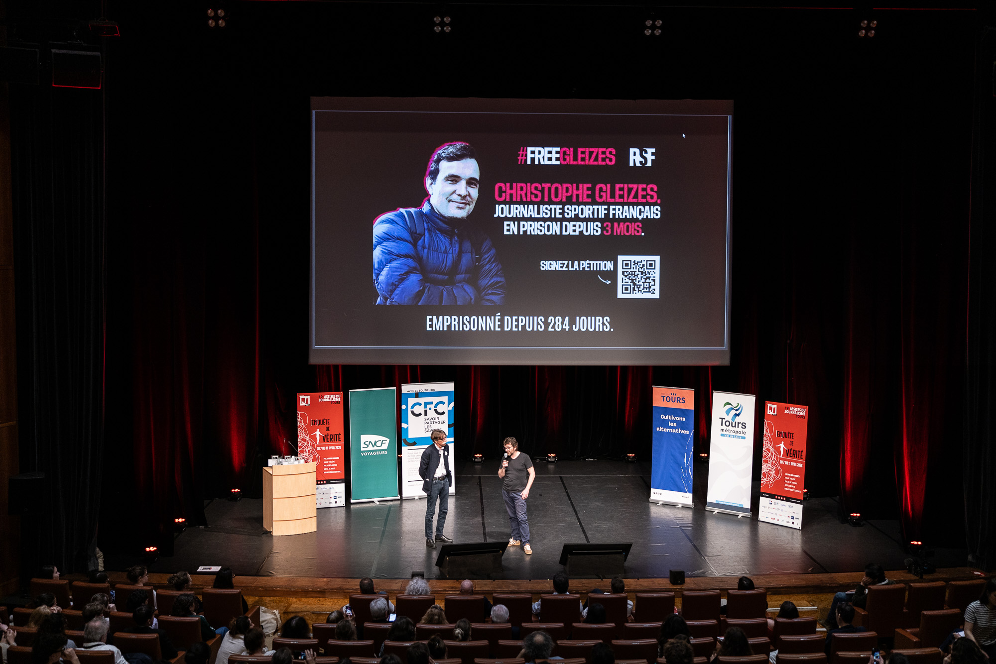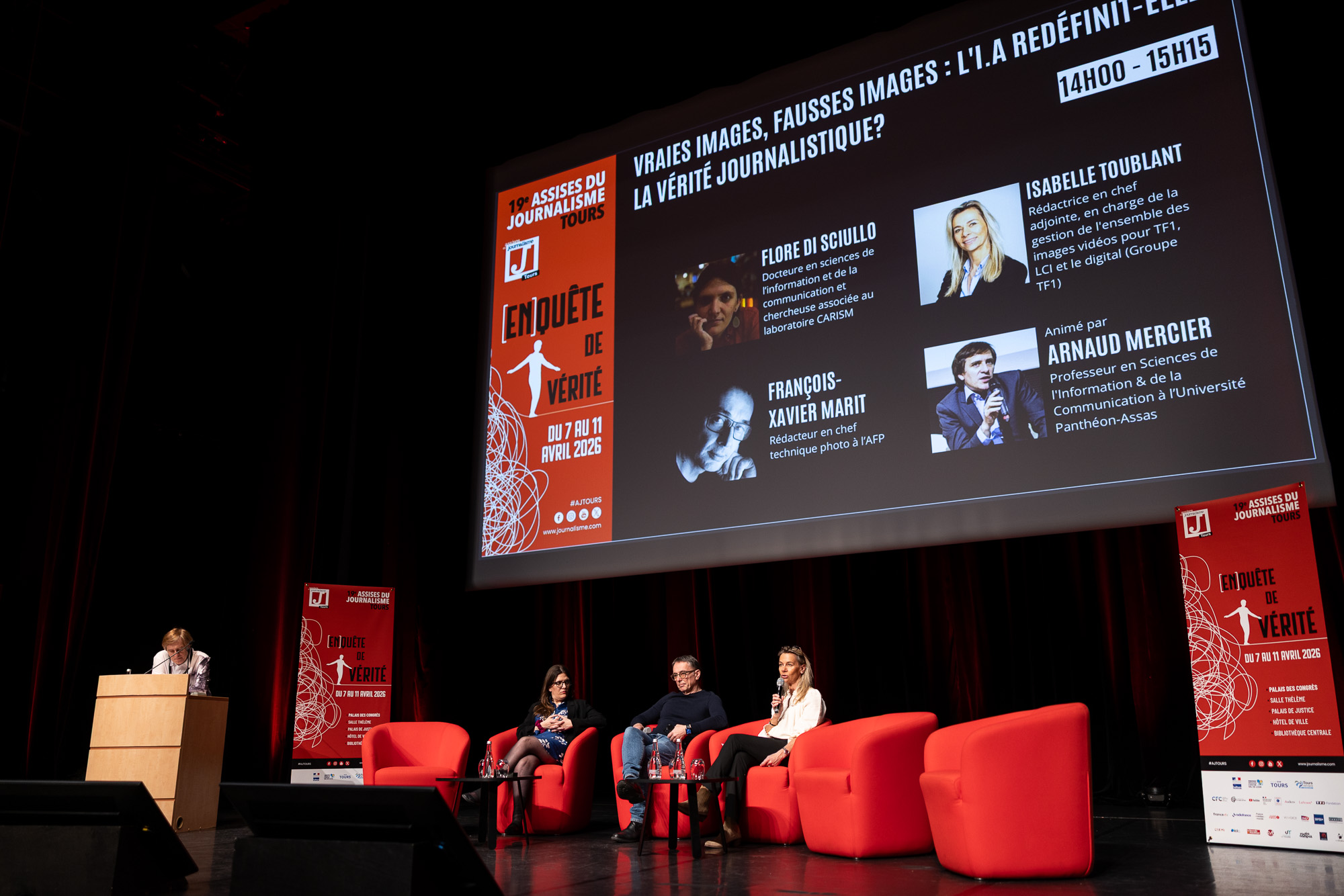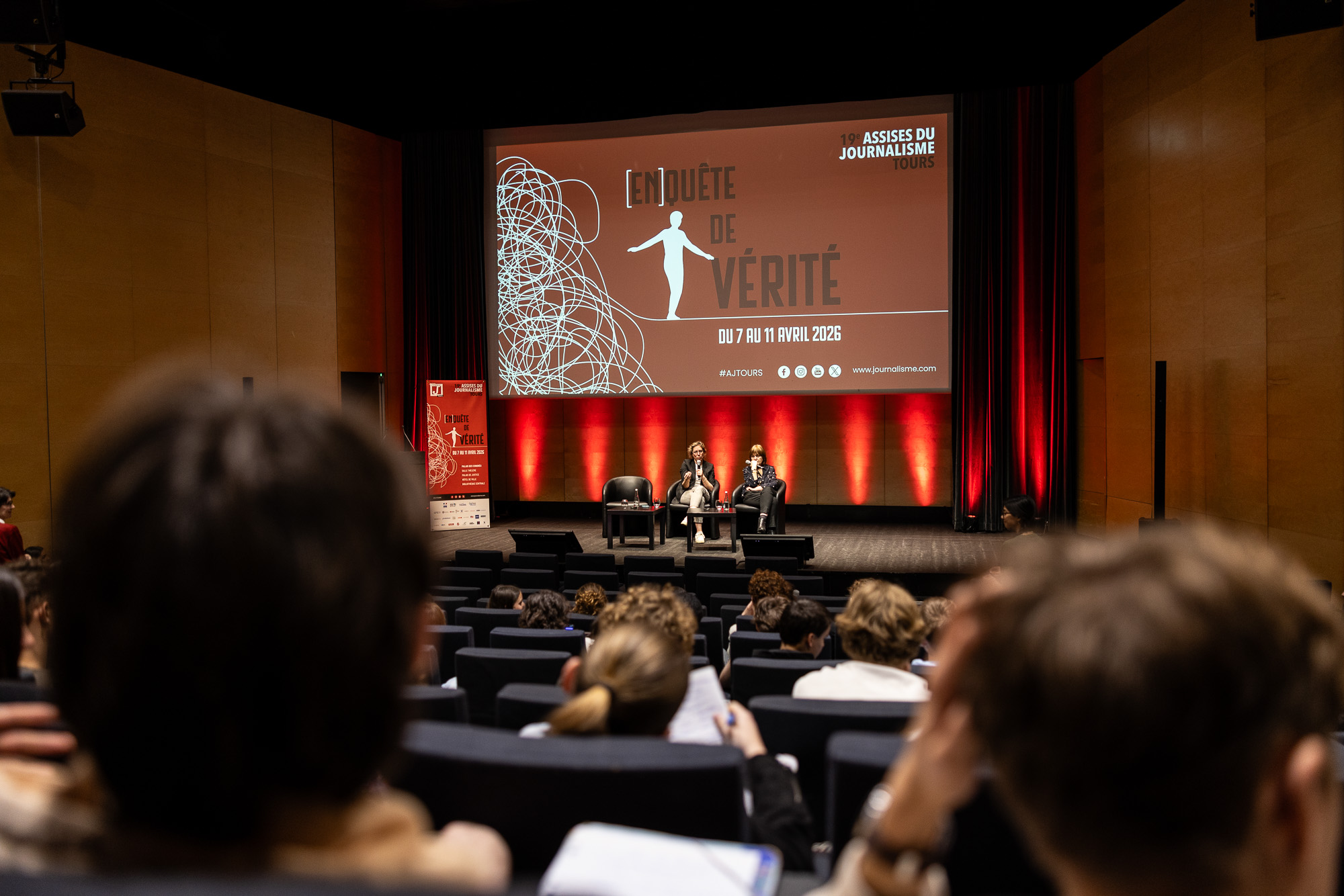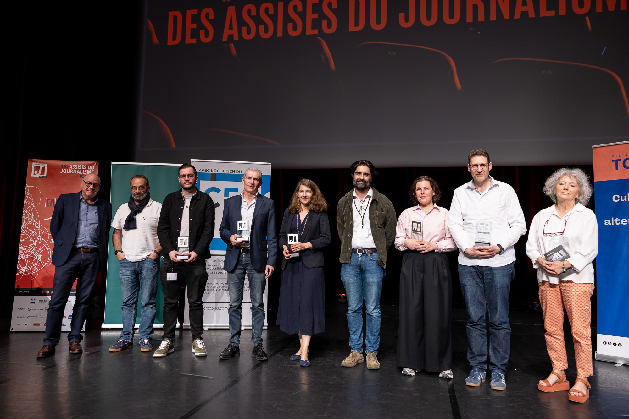 Le jeudi 9 avril se tenait la dernière journée des Assises du Journalisme au Palais des congrès de Tours. Une journée mouvementée rythmée par des ateliers, les baromètres sociaux, une soirée débat entre la journaliste Ariane Chemin et le président du jury 2026 Fabrice Arfi et la très attendue cérémonie de remise de prix !